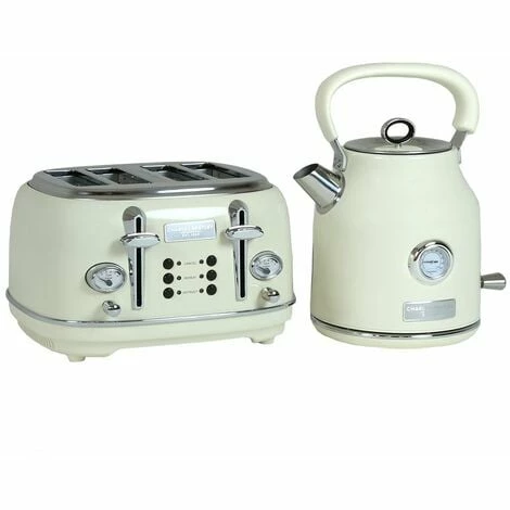 Combining traditional style with modern and sleek features, this kettle will add a touch of luxury to your kitchen.Our kettle features a 1.7 litre capacity and rapid boil function, you won’t have to wait long for your hot beverage of choice; perfect for those busy mornings. Complete with a thermostat dial and easy view water level gauge, this kettle also boats a 360 degree swivel base and automatic off switch.The toaster is equipped with a four slice capacity and two variable toast colour controls, you can make sure you toast bread, bagels, waffles and more to your own preference. The defrost feature is perfect for warming frozen bread and the reheat function ensures food is hot when serving (perfect for when you’re waiting for other food to be cooked.) Concealed crumb trays at the back mean keeping your toaster clean is hassle free. Also available as a set with our matching kettle.Both kettle and toaster also available individually. Browse our full range of matching kitchen appliances.