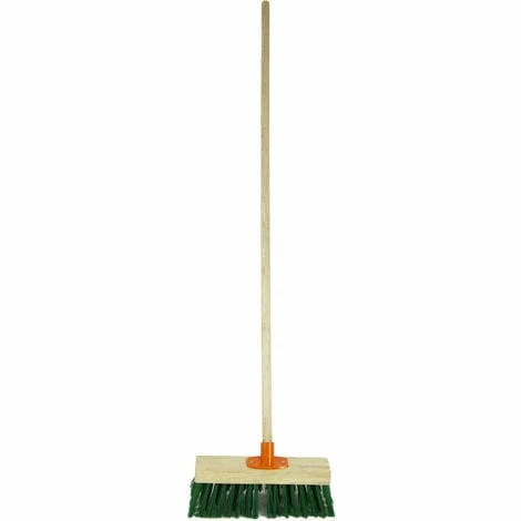 This large PVC Broom by Charles Bentley is ideal for clearing large debris. This item is 12″ and filled with stiff green PVC bristles and comes with a 4ft wooden broom handle. This broom comes complete with orange bracket for extra stability. Made from good quality materials which will last over time and suitable for use in gardens, courtyards, garages and more.