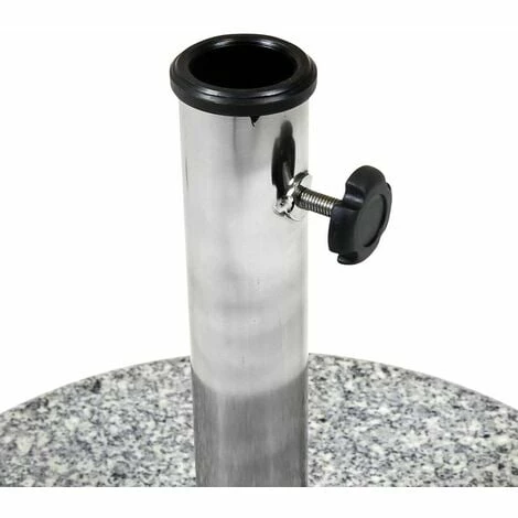 Crafted with a beautiful granite finish, this round umbrella base will add a stylish touch to any garden furniture set. With a solid construction, you can ensure that your parasol will be kept secure in windy conditions. Simply tighten the side screw, to hold the umbrella safely in place. Finished in a natural grey tone, this granite parasol base will complement any parasol.