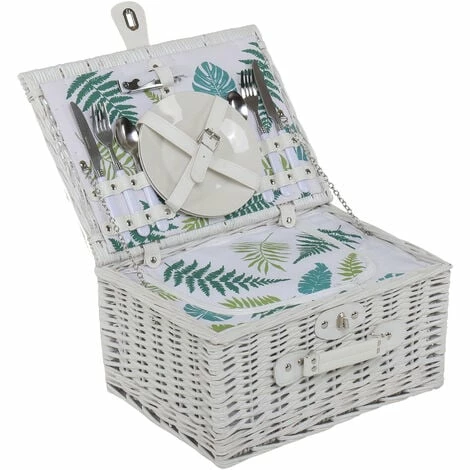 Be the first to review “Charles Bentley 2 Person Wicker Picnic Basket White Leaf Print Hamper Plates” Cancel reply