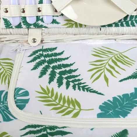 This traditional wicker picnic basket set has everything that you need for a romantic summer picnic. Featuring a fabric leaf print lining and a zip close cool compartment, this set is completed with plates, cutlery and bottle opener, you’ll have everything you need to store your snacks.Crafted with natural wicker and finished in fresh white with a large carry handle, this set is lightweight and easy to carry around. Perfect for a spontaneous picnic in the park or day at the beach.