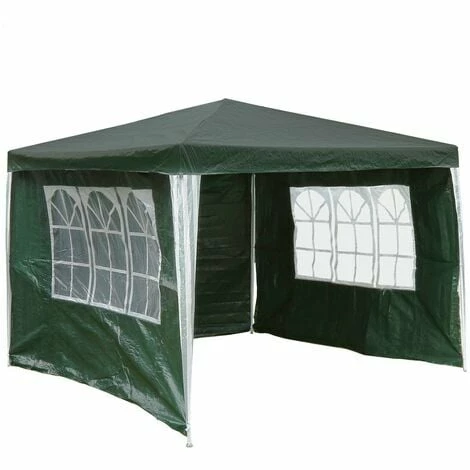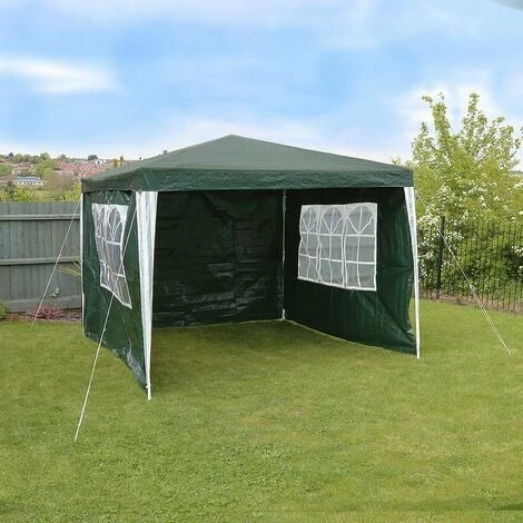 This 3m x 3m gazebo is ideal for use in the garden, at parties, fetes, camping and other gatherings. It is designed to offer strength and stability as well as some protection from wind and rain. The gazebo has an opening along one side and church style windows. Available in three colours: White, Blue & Green.