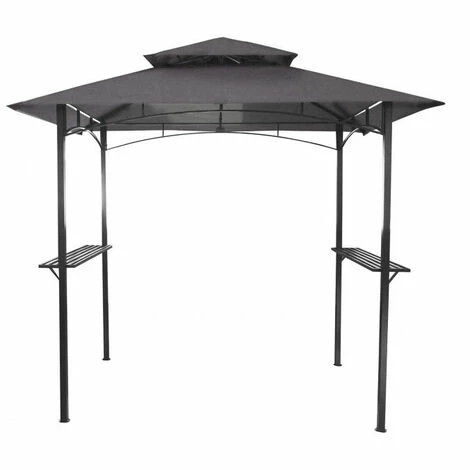 This wonderful Charles Bentley steel frame gazebo is ideal for entertaining your guests and is perfect for using as a sun canopy to keep cool in the shade . This gazebo measures 2.4 x 1.5m and features a water resistant canopy and 2 side shelves, which are ideal for both drinks and snacks. The frame is made of durable powder coated steel and the double top canopy comes in cream or grey water-resistant polyester fabric. This shelter can be easily assembled and disassembled, providing a versatile solution for your garden or patio.Please Note: Can be bolted to decking or concrete floors.