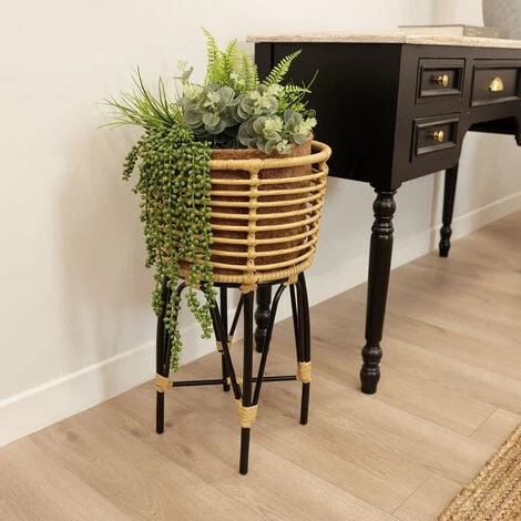 Elevate your space with the Charles Bentley woven plant stand. Plant stands are a great way to add height and interest to your displays. Made from plastic rattan and iron, all of our plant stands in the Casablanca range can be used indoors or outdoors. Whether you’re adding to a contemporary living room, boho home-office space or simply sprucing up your garden, this plant stand is the perfect versatile solution to compliment your favourite plants.