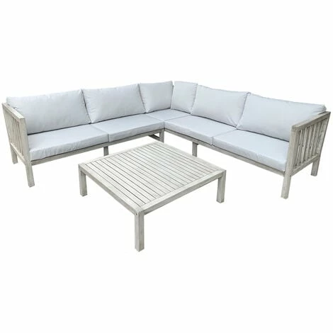 This stylish lounge set is a beautiful addition to any garden, patio or living area. A perfect set for up to four people to enjoy a relaxing drink in comfort. Comprising of a rectangular Acacia wood coffee table with a large corner sofa, the set makes a sophisticated statement indoors or out. Crafted from beautiful FSC Acacia Hardwood which has been ethically sourced and sustainably produced to the highest quality. This set is ideal for family dining and relaxing in your garden in the summer months. A range of matching outdoor furniture pieces are available.
