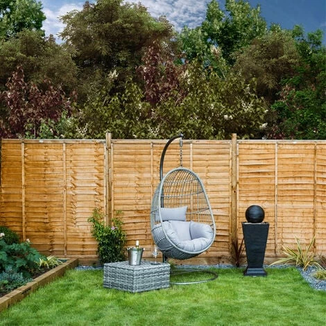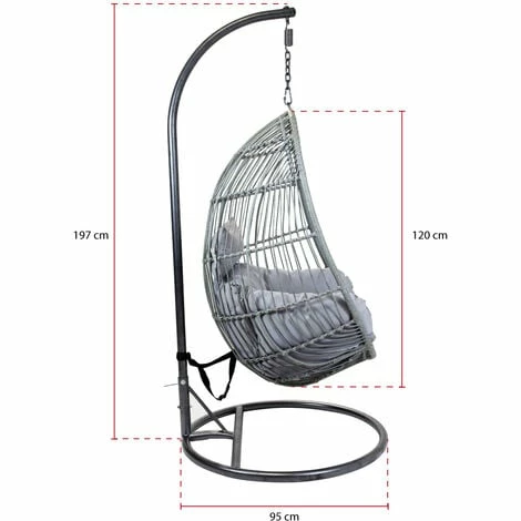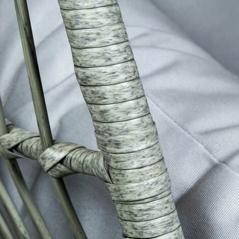 Make the most of lazy summer afternoons, lounging around in the garden on our hanging egg shaped rattan swing chair. Featuring an airy open weave rattan design in a chic light grey shade, the chair is supported by a strong grey steel frame.For extra comfort and support, the chair is fitted with a thick, padded grey seat cushion. Easy to maintain, the chair is showerproof so you don’t have to worry about leaving it outside all year round. This attractive rattan swing chair will add a stylish focal point to any outdoor living space.Please Note: Please cover during the winter months to ensure its longevity. We have a rattan swing seat cover available to purchase separately.