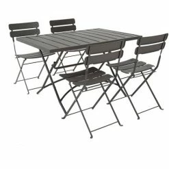 Enjoy eating your breakfast, lunch and dinner outdoors this season, with this beautiful four seater dark grey dining set. Constructed with a powder coated steel frame, this highly durable set will provide long lasting use. Perfect for gardens, balconies and patios, this large four seater dining set and can be folded away when not in use.