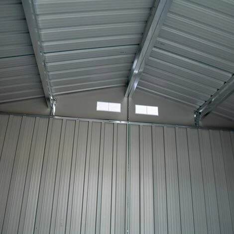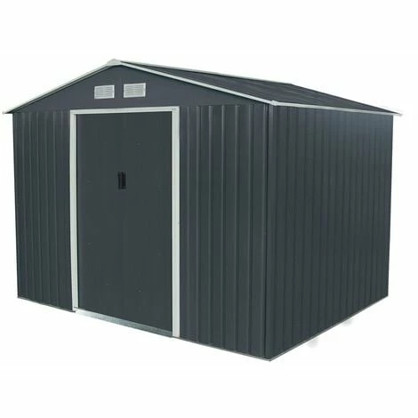Our 9ft x 6ft metal garden shed is ideal for storing garden and DIY equipment such as lawn mowers, power tools and garden furniture. Alternative uses include bike, motorbike or garden furniture storage. Made from metal, and featuring a steel structure, this item is durable and long lasting. Features include two sliding doors, four vents and a floor foundation.