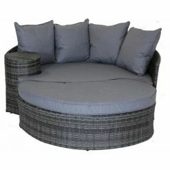 This grey curved rattan sofa comes complete with a separate footstool that can be used to interlock to create a full size day bed or can be removed and used as additional seating. Its built-in table is convenient for holding drinks or a book. The shower proof cushions are comfortable and practical. Perfect for an intimate setting or social gatherings, with space saving design enabling the foot stool to integrate with the day bed.