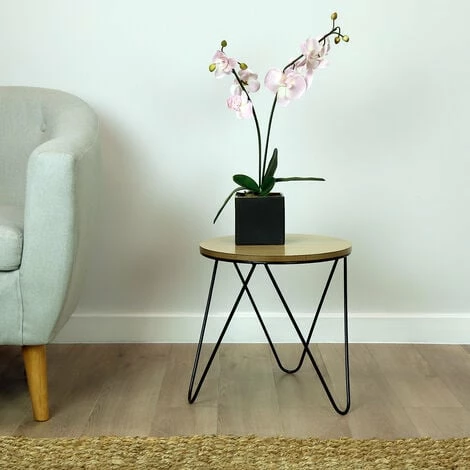 Our Charles Bentley Hairpin side table would be a great addition to your lounge, conservatory or bedroom. Combining a sleek, contemporary style with coated steel legs and a veneer wooden top, this piece is the full package – stylish, sturdy, and easy to look after. Use to display a vase of flowers, home a lamp, or simply a place to put down your drinking glasses.