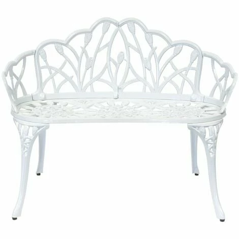 Ideal for any size garden, this pretty white bench is made from Cast Aluminium and features a tulip design. The bench would look great on a patio or decking area and would be perfect for enjoying those summer evenings outdoors. The bench can seat 2 people comfortably.