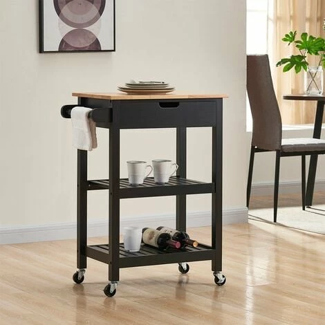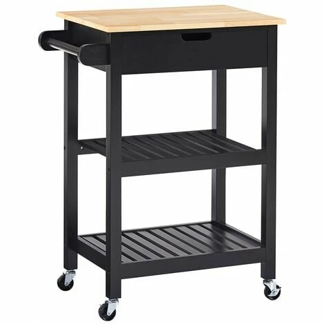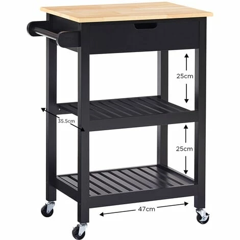 Our Charles Bentley kitchen trolley is perfect for those looking to add extra workspace in their kitchen. This piece includes a tea towel rail, large storage drawer, two tiers of shelving, and a stylish rubber wood top. What’s more, this piece has wheels for easy movement, allowing you to create additional space and storage wherever it is needed. Also available in grey and white.