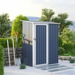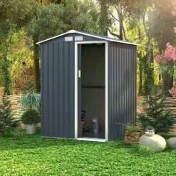 Charles Bentley 4.7ft X 3ft Metal Storage Shed Grey Small Roof Door Apex