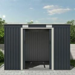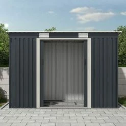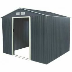 Charles Bentley Navy Grey 9ft X 6ft Metal Steel Garden Shed Outdoor Storage