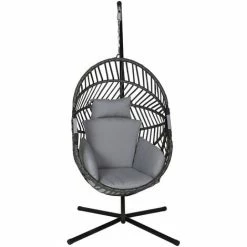 Charles Bentley Garden Wicker Rattan Patio Hanging Swing Chair Seat – Black
