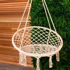 Charles Bentley Cotton Woven Hanging Swing Chair / Hammock In Beige