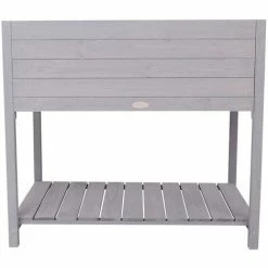 Charles Bentley FSC Wide Wooden Ladder Planter – Grey 3 Shelves