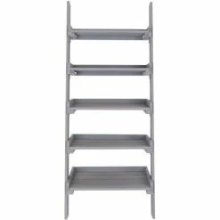 Charles Bentley FSC Slim Wooden Ladder Planter – Grey Tall 5 Shelves