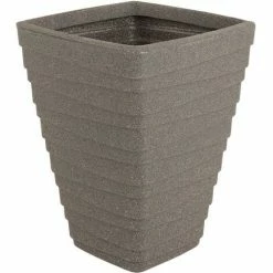 Charles Bentley Pair Of Tall Trojan Square Granite Planters (Dia. 40cm) Pots
