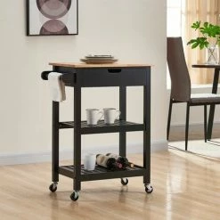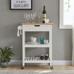 Charles Bentley Wooden Kitchen Drinks Trolley/Cart/Island/Worktop On Wheels